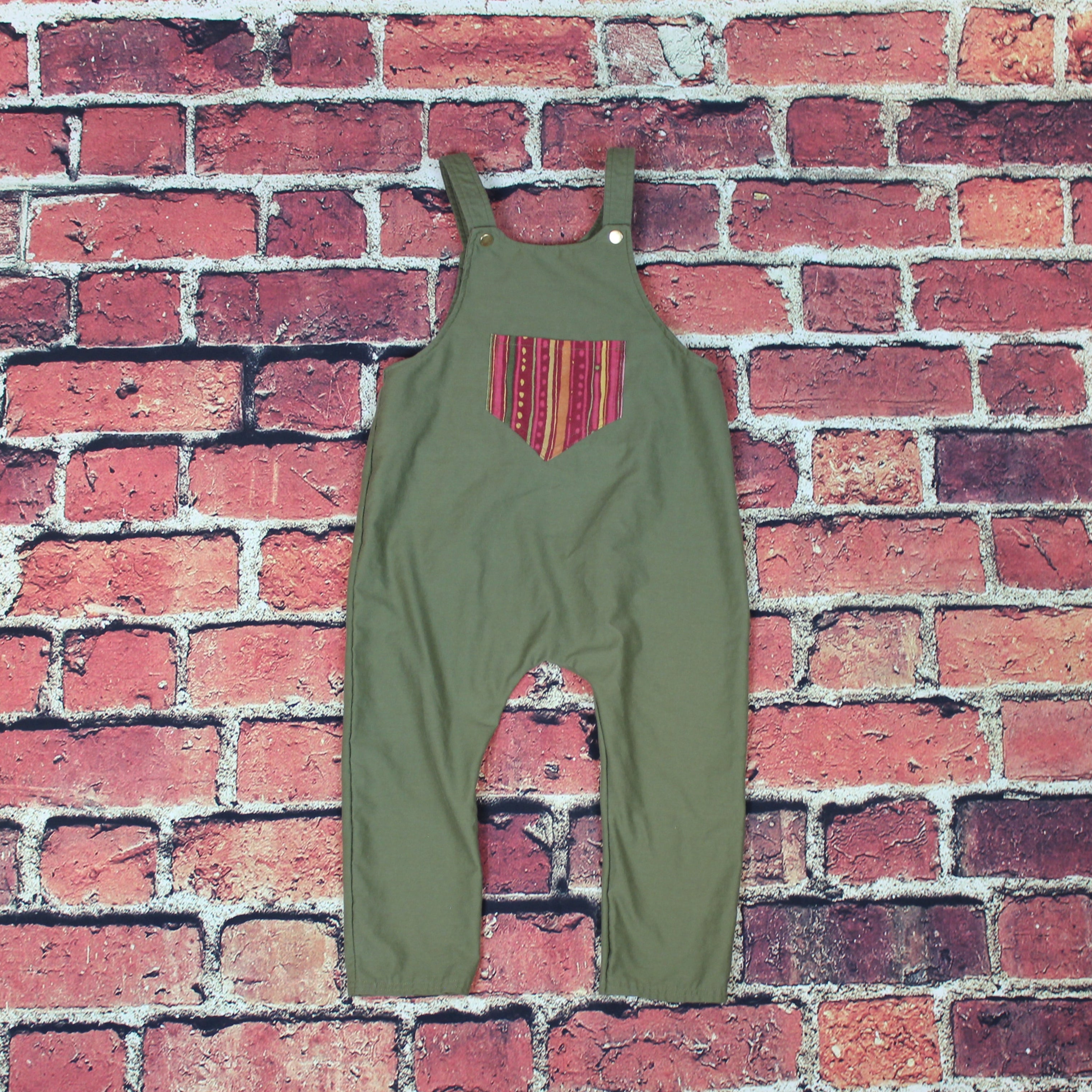 2T - Green Overalls w/ Boho Pocket 2T - Green Overalls w/ Boho Pocket