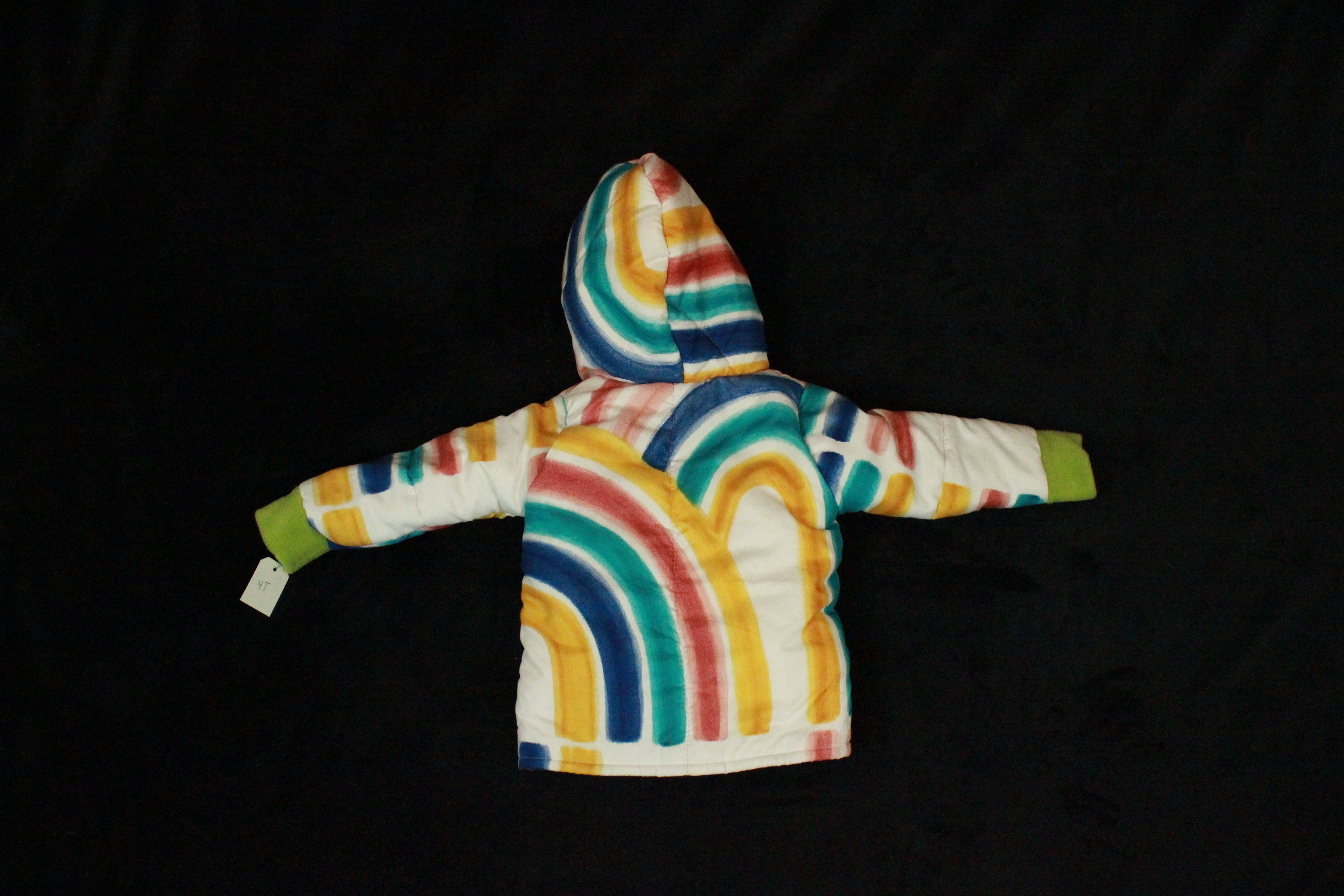 Perfect fall or winter jacket with easy snaps. Fully fleece-lined and made from a comforter to keep your kiddo warm. The purchase of this jacket will benefit CONAPAC in Peru. CONAPAC focuses on providing school supplies to teachers and children, providing water filtration systems, and offering sustainable agricultural initiatives.