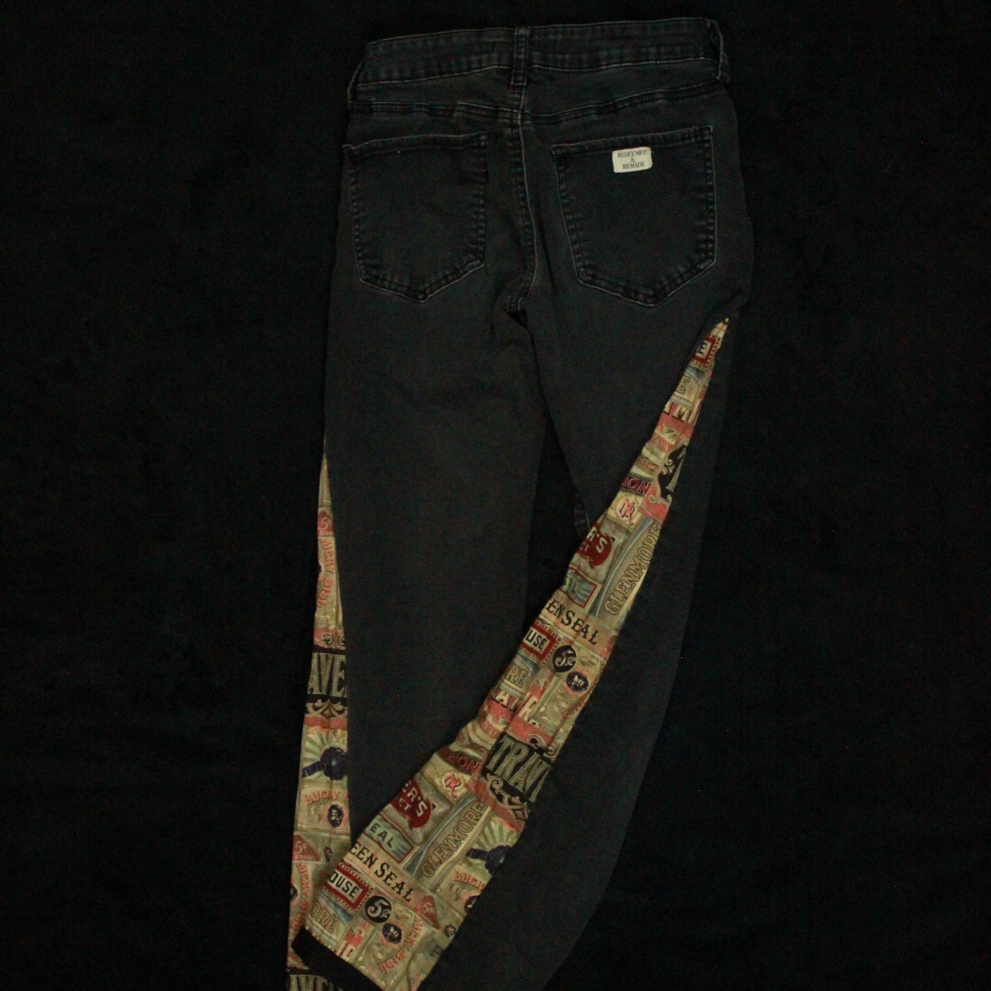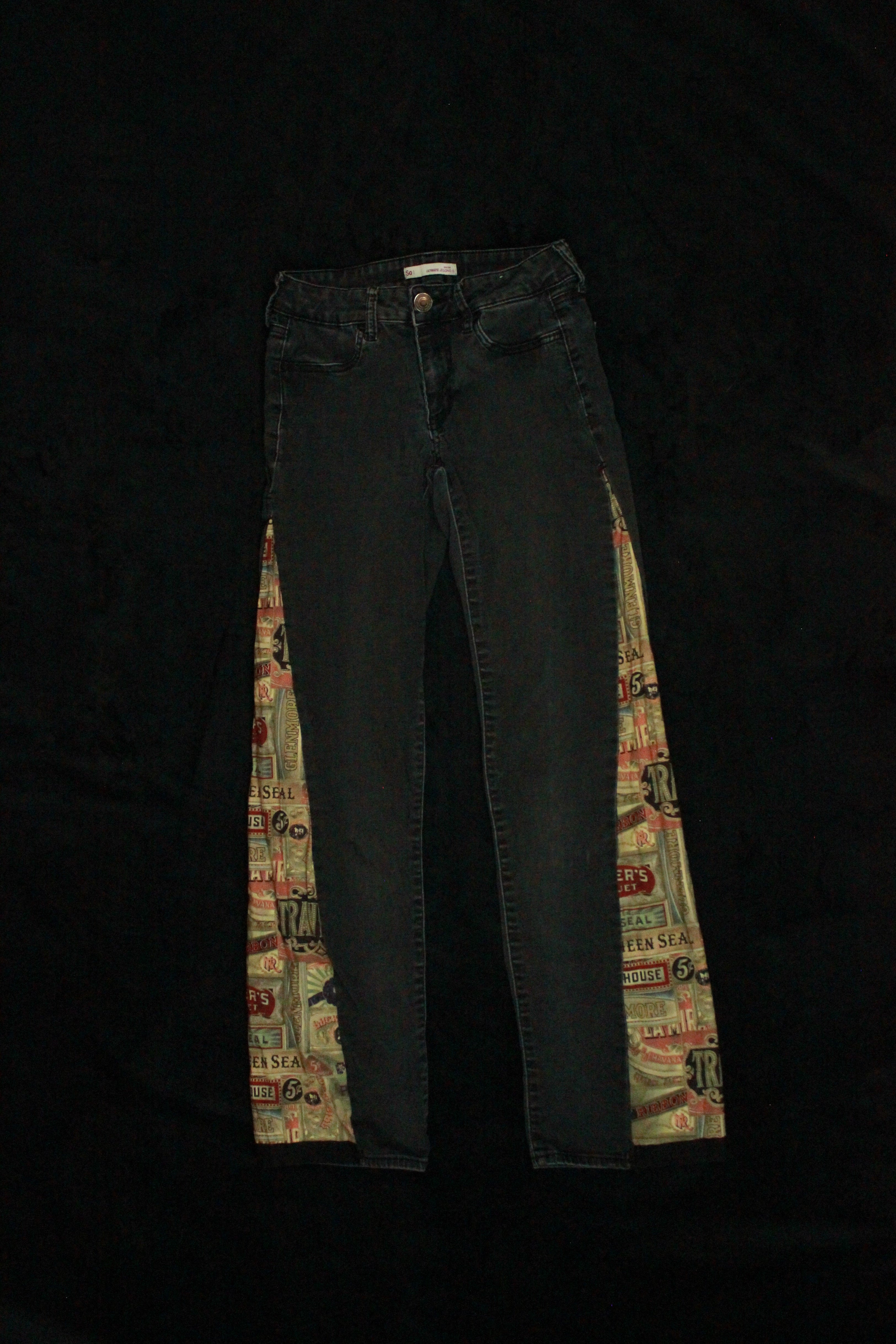 These pants were previously loved as skinny jeans, they have been upcycled into a straight leg, wide leg pant. The tag says they are a size 5 in juniors. They fit like a size 4 womens.